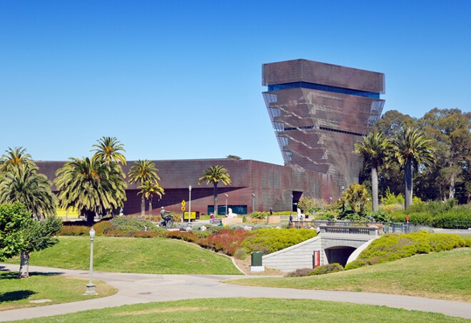 In the heart of Golden Gate Park, the de Young Museum celebrates art, architecture, and the rhythm of nature. Its copper façade gleams beneath the San Francisco sky, echoing the shifting light and landscape that surround it. Inside, galleries unfold with American art from the 17th century to today, textile masterpieces, and global treasures from Africa and Oceania.
